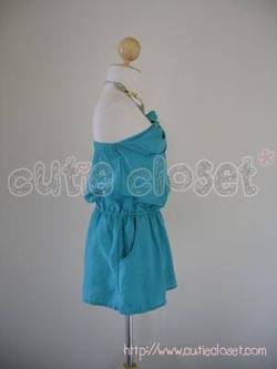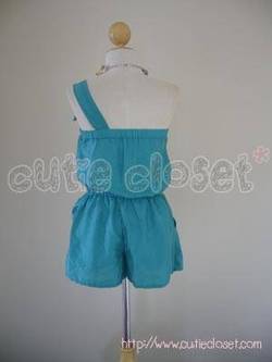 NEW ITEMS จัมพ์สูทหรือชุดหมีไหล่เดียวตกแต่งโบว์สีเขียวน้ำทะเล พร้อมสินค้าลดราคา แบบไม่ซ้ำใคร สินค้าเกรด AAA โดย [Cutie Closet]