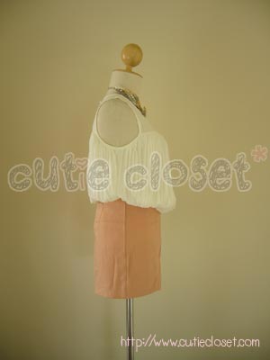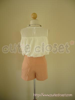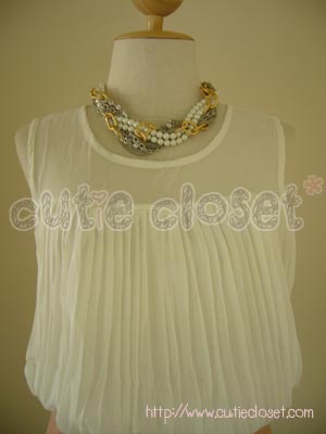 UPDATE!!! เสื้อผ้าชีฟองคอกลมตัดต่อใต้อกอัดพลีทสี off white เสื้อผ้าสวยราคาไม่แพง สินค้าเกรด AAA โดย [Cutie Closet]