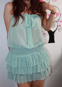 เดรสผ้าชีฟองเบาๆสีเขียว