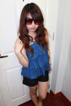เสื้อเดนิมสายเดี่ยวตัวสั้น เสื้อตัวสั้นตอนนี้กำลังอินมากๆ!!