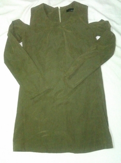 เสื้อเปิดไหล่สีเขียวขี้ม้า ตัวยาว ข้างหลังเป็นซิป ค่าส่งฟรี