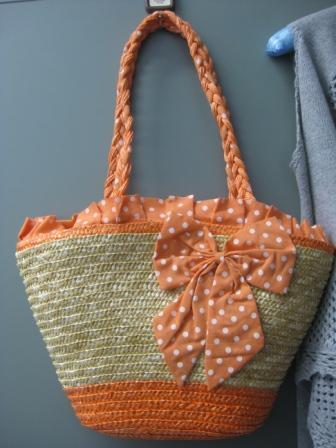 ใหม่+++ กระเป๋าสานแนวเกาหลี ญี่ปุ่น สไตล์วินเทจ สีส้มผูกโบว์ orange polka dot ขายถูก 380.-