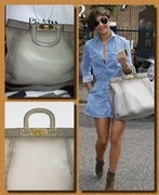 ++** ขายกระเป๋าถือ Prada Cervo Frame Tote สีเทา รับประกันของแท้ ใช้ 2 ครั้งเอง ในช้อปที่เกษรยังโชว์อยู่เลย