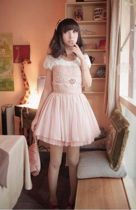 ชุดเดรสเกาหลี สีชมพูอ่อนน่ารักสไตส์เรียบร้อย เสื้อมีลูกไม้ลายสวยงามกระโปรงระบาย 2 ชั้น ดูน่ารักอ่อนหวาน เข้ากับแฟชั่นเสื้อเกาหลีที่กำลังฮิตกันอยู่