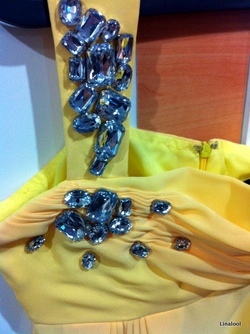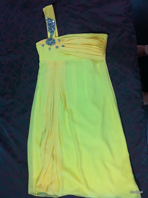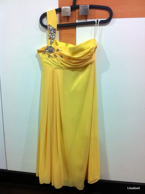 ชุดราตรีไปงานแต่งงาน สีเหลืองสดใส ไหล่เดียว ติดเพรช