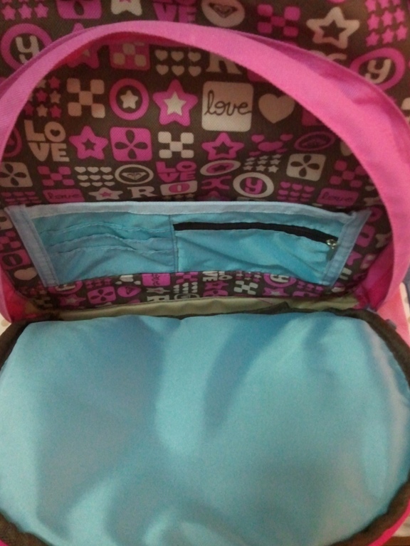 กระเป๋าเป้ Roxy ของแท้ โลโก้ปัก Roxy สีฟ้า ตัดกับสีพื้นชมพูและน้ำตาล ใบนี้น่ารักจริงๆ ค่ะ