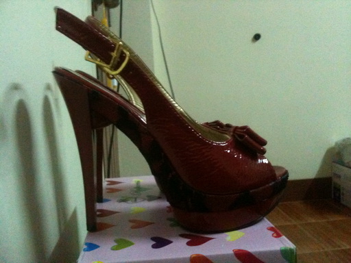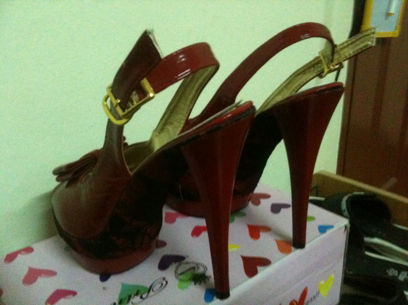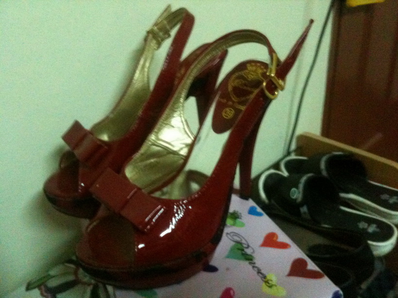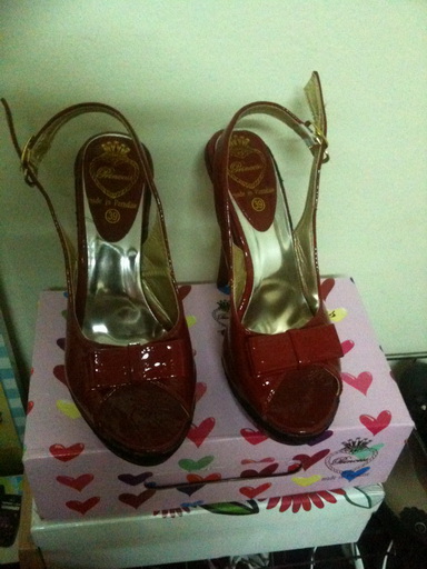รองเท้าส้นสูงสีแดงเบอร์ 39 ค่ะ เคยใส่ 1 ครั้ง ซื้อเมื่อ 15 ต.ค.54 ด้านล่างรองเท้าจะเป็นลายผ้าสีดำ สวยมาก ลองติดต่อขอดูก่อนได้ ไม่ซื้อไม่เป็นไรค่ะ คู่นี้เราซื้อมา 690 บาท สภาพดีมาก เพราะเคยใส่แค่ชั่วโมงเดียว ไม่มีรอยใดๆทั้งสิ้น เพราะเราเดินในโรงแรมอย่างเดียว (เอารองเท้าไปเปลี่ยน) เรื่องราคาต่อรองได้นะ