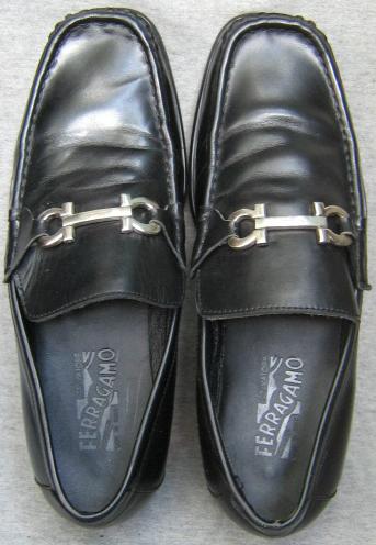 Ferragamo หนังดำทรงสวมมีส้นคาดเหล็กเบอร์ 40