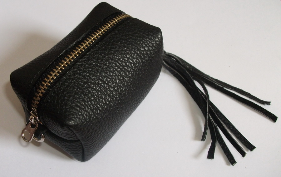 ทำจากหนังวัวแท้ 100% เป็นงานส่งห้าง ขึ้นห้างขายใบละ 690 บาท หลุดQCเนื่องจากใส่พู่ผิดข้าง (ตัวกระเป๋ายังไม่ได้ปั๊มแบรนด์) ขนาดกระเป๋า สูงXกว้างXยาว(ไม่รวมพู่) 2.5"x2.5"x4" มีทั้งหมด 6 แบบ ครบทั้ง Collection เหมาๆที่ 70ใบ เพียง 7000 บาทถ้วนๆ เฉลี่ยเหมาไปใบละ 100 บาท เอาไปขายต่อกำไรเพียบ!!!