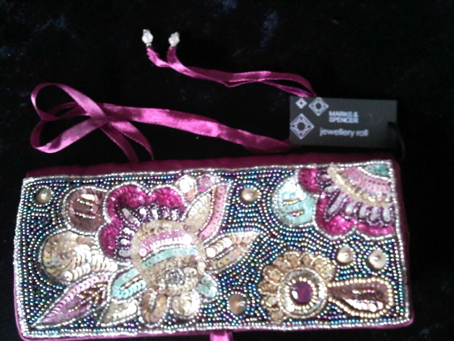 Marks & Spencer Jewellery Roll ใหม่ซื้อมาไม่เคยใช้ กระเป๋าใส่เครื่องประัดับ ประดับเลื่อม ดูดีมาก ขายถูกๆเลย