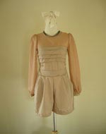 น่ารักๆ กับจัมพ์สูทหรือชุดหมีแพทเทิร์นเดียวกับ Miss Selfridge ตัวนี้เป็นผ้าซาตินเนื้อหนานะคะ ตีเกล็ดด้านหน้า ตัดต่อผ้าชีฟองที่ช่วงคอและแขน มีกิมมิคที่ด้านหลังค่ะ ซิบซ่อนด้านข้าง ใส่แล้วพอดีตัวและเน้นรูปร่างมากๆ เลยค่ะ