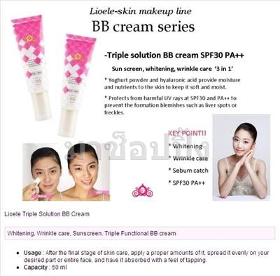 Lioele Triple Solution BB Cream SPF30PA++ 50ml บีบีครีมใหม่ล่าสุดจาก Lioele เนื้อเนียนสุดๆ ทั้งลดเลือนริ้วรอย ปรับสีผิวให้ขาวขึ้น และกันแดดใน 1 เดียว