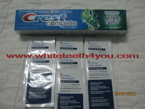 แผ่นฟอกฟันขาว รุ่น Supreme จะเป็นรุ่นที่เห็นผลไวที่สุด แต่ไม่ค่อยมีขายตามเวบในบ้านเราสักเท่าไหร่ สาเหตุที่ไม่ค่อยมีขายและแพร่หลายในเมืองไทย เพราะ Whitestrips Supreme นี้ Crest ผลิตมาเพื่อจำหน่ายแก่ทันตแพทย์ในอเมริกา