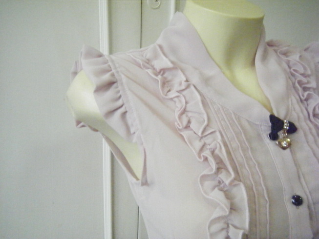 ผ้าชีฟอง สีชมพูอมม่วงอ่อนๆ แขนเลยไหล่มานิดนึง มีเข็มกลัดผ้ากำมะหยี่รูปโบว์ห้อยหัวใจประดับเพชรแถมให้ด้วยจ้า ใสกับเสื้อสูทแล้วดูดีมากๆ ใส่แค่ครั้งเดียวค่ะ