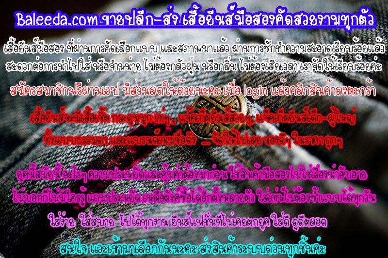สำหรับ ราคาส่ง ไม่จำเป็นต้องซื้อมาก ไม่จำเป็นต้องไปเหมากระสอบ เพราะคุณจะได้ของที่ไม่ต้องการติดมาด้วย แล้วจะทำอย่างไรกับของเหล่านั้นคะ มาเลือกที่ baleeda.com เราคัดมาแล้ว ขายกันตามสภาพเลยค่ะ มีตำหนิ หรือรอยตรงไหน จะบอก ไม่มีย้อมแมวแน่นอน รับไปขายได้อย่างสบายใจด้วย เพราะซักให้สะอาดก่อนส่งทุกรั้งเลยค่ะ สินค้าส่งระบบด่วน บริษัทเอกชน ปอลอ เอ็กซ์เพลส ส่งถึงประตูบ้านท่าน ด้วยอัตราค่าส่ง "ฟรี" ค่ะ เพราะสินค้าคิดราคารวมค่าจัดส่งไปแล้ว จะไม่มีการบวกเพิ่มค่าส่งอีกในหมวดของ ยีนส์มือสอง
