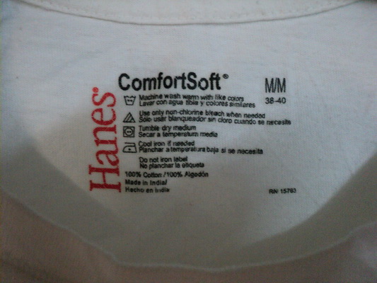 ป้าย HANES (SIZE M) MADE IN INDIA ผ้า100
