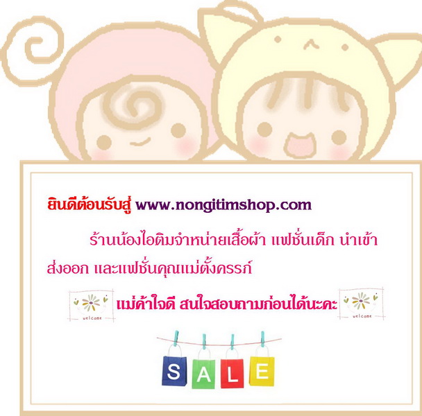 จำหน่ายเสื้อผ้าเด็กนำเข้า ส่งออก แฟชั่นคุณแม่ตั้งครรภ์ คุณภาพดี ราคาเป็นกันเอง แม่ค้าใจดี สนใจสอบถามก่อนได้่นะคะ ฉลองเปิดร้านใหม่ สั่งของ 500 บาทขึ้นไป จัดส่งฟรี