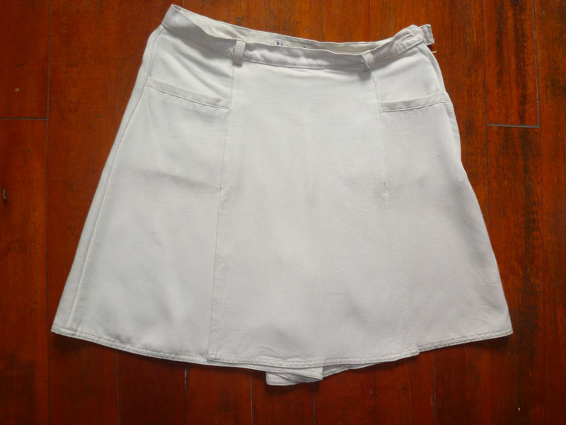 3. กางเกงกระโปรง สีครีม Size M ขนาด เอว 28 นิ้ว สะโพก 34 นิ้ว ยาว 16.5 นิ้ว วัดจากขอบกระโปรง ราคา 120 บาท