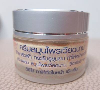 สรรพคุณ ลดสิว ฝ้า ทำให้หน้าขาว กระชับรูขุมขน เป็นวิตามินอีเข้มข้น เกรดเอ ครีมตัวนี้ทำให้ผิวขาวแบบอมชมพูค่ะ ไม่ขาวซีด ไม่กัดหน้า ไม่ลอกหน้า ใช้นานๆ ผิวหน้าจะแข็งแรงขึ้นค่ะ ทาได้ทั้งเช้าและเย็น แต่ทาตอนเช้าต้องทาครีมกันแดดตามนะคะ เพราะไม่มีสารกันแดดค่ะ สามารถทาได้ทั้งหน้าทั้งตัวค่ะ ถ้าทาทั้งหน้าทั้งตัว รับรองว่าผิวสวยใสเนียนละเอียดแน่ๆค่ะ ถ้าใช้คู่กับผงขัดเวียดนาม หน้าจะยิ่งกระจ่างใสค่ะ ขนาด 10g. ราคา 150 บาท
