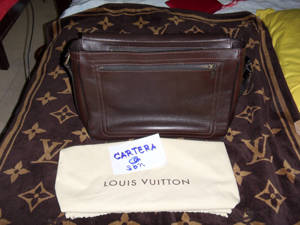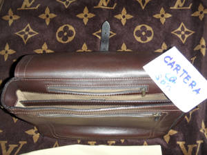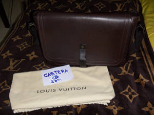 - Utah leather discreetly stamped with the LV initials, textile strap, leather base, rustic cotton lining