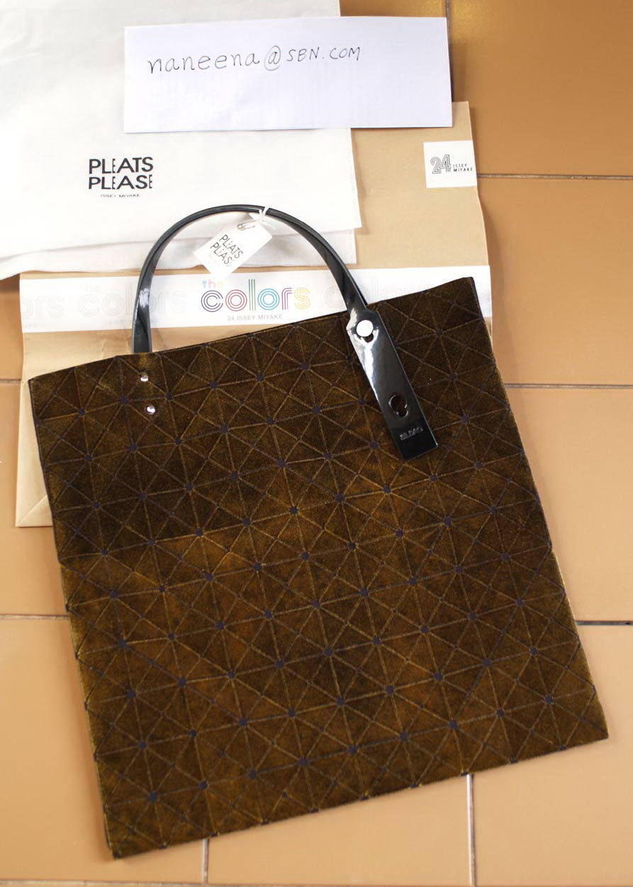 Pleats please ผ้ากำมะหยี่ 10*10 Velvet Green (สีประมาณ คล้ายๆ เขียวขี้ม้า ออกเหลือบๆ) อันนี้ ของใหม่ค่ะ ราคาใบละ 9,500 บาท มีถุงผ้ากันฝุ่น ป้าย ถุงกระดาษ ครบครันนะคะ รูปถ่ายอาจจะไม่สวยเท่าตัวจริง เวลาโดนแสงสีมันจะออกทองๆ ถ่ายรูปให้ดูเสมือนจริงยากเหลือเกิน