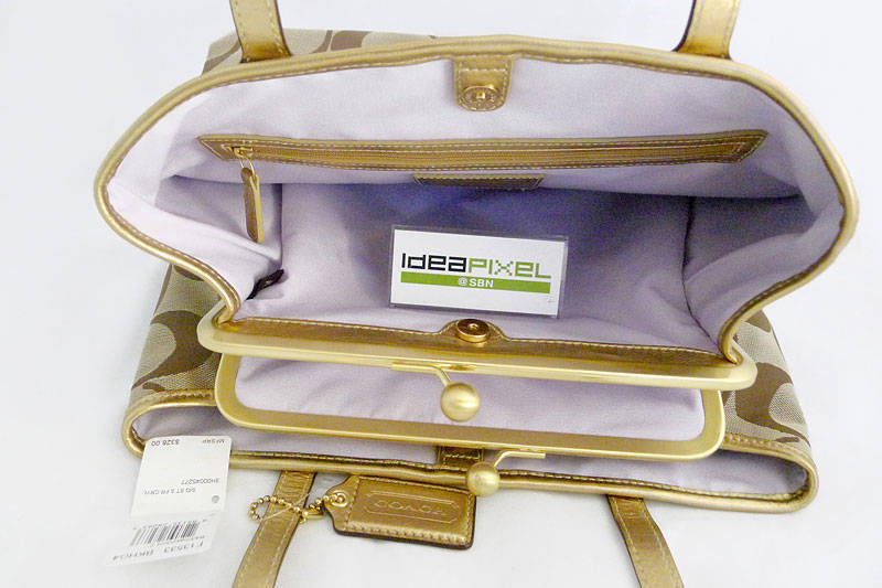 Coach Khaki & Gold Signature Stripe Frame F13533