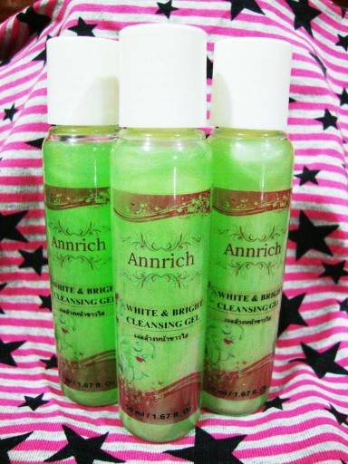 1 Annrich White & Bright Cleansing Gel เจลล้างหน้าเพื่อผิวขาวกระจ่างใส อมชมพู ผิวสุขภาพดี เจลล้างหน้าผสมชาเขียวและไข่มุกบริสุทธิ์ ทำความสะอาดผิวหน้าอย่างล้ำลึก ทำความสะอาดผิวได้อย่างสะอาดหมดจด พร้อมทั้งบำรุงผิวหน้าให้เนียนนุ่มชุ่มชื้น กระตุ้นการไหลเวียนของเลือด ให้ผิวหน้าขาวใส อมชมพู ดูมีเลือดฝาด รูขุมขนกระชับ ป้องกันการเกิดริ้วรอยก่อนวัย หลังการทำความสะอาดผิวทำให้ผิวพรรณสดชื่น สดใส คงความชุ่มชื่นแก่ผิว