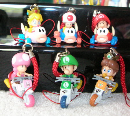 มินิโมเดล/ คล้องมือถือชุดนี้เป็นหนึ่งในโมเดลไม่กี่ชุดที่เห็นแล้วปิ๊งทันทีทั้งที่ไม่รู้จักมักจี่ตัวการ์ตูนมาก่อนค่ะ มาทราบเอาทีหลังว่าเป็นโมเดลจากเกมนินเทนโด 1 ชุดมีโมเดลเล็กๆ 6 ชิ้น ขับรถหน้าตาแปลกประหลาด 3 ตัว ขี่มอเตอร์ไซค์ 3 ตัว น่ารักมากๆค่ะ\\(^^)// สายห้อยเป็นไหมสีแดงสดใส ตัวโมเดลก็สีสวยไม่น้อยหน้า งานกาชาปองลิขสิทธิ์ Yujin ของแท้ในแพ็ค มาพร้อมใบแนบ นำเข้าจากญี่ปุ่นค่ะ