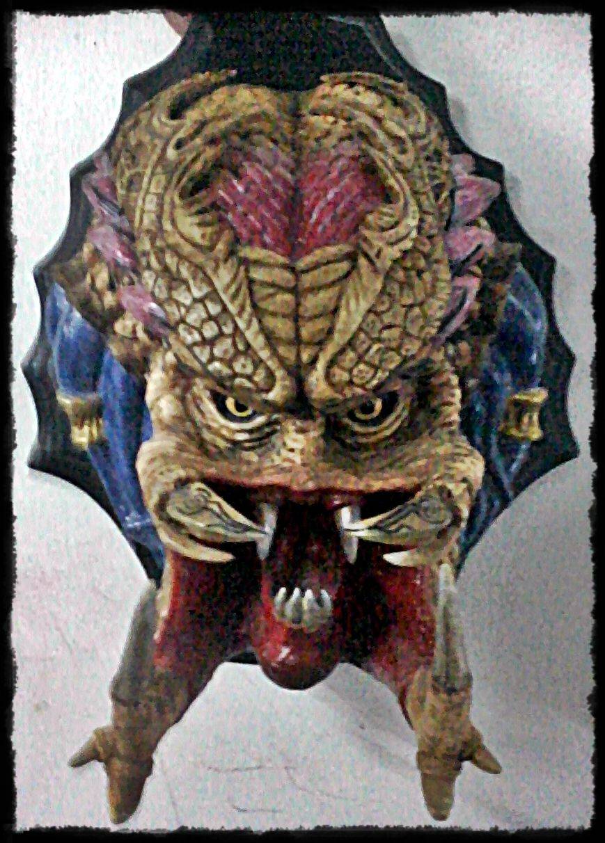 หัวนี้เป็นตัวที่ผมได้ตัวดิบมาแล้วเอามาปั้นเสริม เติมแต่งจนเป็นแบบที่เห็นเพิ่มเยอะมากครับแตกต่างจากเดิมเลยดูรูปประกอบนะ หัวจะสูงประมาณ 35 cm รวมปีก กว้าง 28 cm ลึถ 20 cm ทีปั้นเพิ่มก็จะทำหัวเลียนแบบ Predator ภาคล่าสุดตัว Bad Blood และทำเขี้ยวเพิ่มอีกหลายชิ้น ไม่มีใครเหมือนแน่นอน ถ้ามีผมให้เงินคืนทันทีแถมเพิ่มเงินให้อีกด้วย ภาพอาจไม่ชัดเพราะใช้มือถือถ่าย สนใจโทร 089-0560668