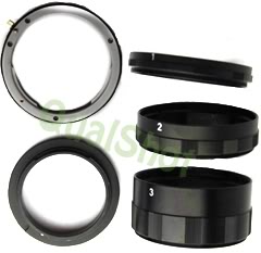 New Macro Extension Tube for Canon Mount This brand new Macro Extension Tube Set for film & Digital SLR includes 3 extension tubes - 9mm, 16mm, 30mm adapters and a male & female adapter. You may mount the tubes between lens and camera body to get your choice of macro ranges. There are totally 8 combinations. Use this set will not downgrade the optical quality of your lens. Sharpness and Saturation can be still maintained. But they are not meter-coupled. They do not preserve the automatic diaphragm. It should be used with manual lenses with their own aperture dial. There is no electronic connection between the body and the lens. Automatic lenses can be used with their widest open aperture only.