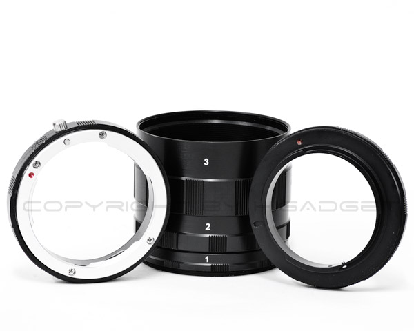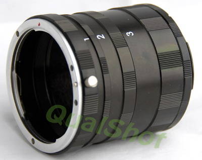 Nikon Mount, for all Nikon SLR & DSLR It moves the lens farther from the film or digital sensor. The farther away the lens is, the closer the focus, the greater the magnification. This extension tube does not affect image quality as there is no optics inside. In comparison, a close up filters are often blamed for degrading image quality. Brand new, never used; Made of metal (not plastic); color : black Adjustable Length This extension tube consists of 5 parts: Camera Body Mount Adapter Lens Mount Adapter 9mm tube (Tube 1) 16mm tube (Tube 2) 30mm tube (Tube 3) The more tubes you add, the closer the focus and the greater the magnification. Remarks There are no electrical contacts in the extension tubes. Exposure has to be adjusted manually. Aperture control is not available if you use a lens which does not allow you to manually adjust the aperture (without an aperture ring). Suitable For ALL NIKON DSLR and Film SLR and Lens