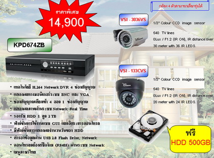 เครื่องบันทึกภาพ KPD674ZB พร้อมกล้อง VSI - 3036VS หรือ VSI - 133CVS 4 ตัว
