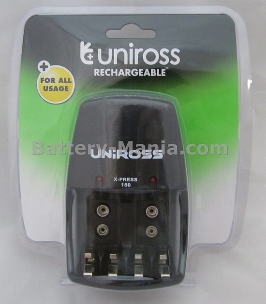 UNiROSS รุ่น X-press 150 เครื่องชาจถ่านสามารถชาจได้ 3แบบ ถ่านAA,ถ่านAAA,ถ่าน9V ชาจได้ครั้ง4ก้อนหรือ2ก้อนก็ได้ ถ่าน9V ชาจครั้งละ2ก้อนหรือ1ก้อนก็ได้ มีไฟLED บอกสถานการทำงาน