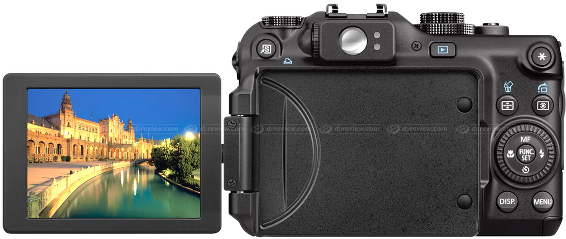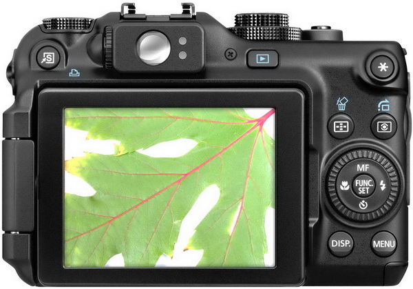 ภาพในสภาพแสงปกติ และได้ความเร็วชัตเตอร์สูงพอที่จะใช้มือถือกล้องถ่ายภาพได้ หรือหยุดจังหวะการเคลื่อนไหวได้ การออกแบบ เมื่อมองคร่าวๆ รูปลักษณ์ของ G11 แทบจะไม่ได้แตกต่างจาก G10 มากนัก ที่เห็นได้ชัดเจนคือจอมอนิเตอร์ที่มีขนาดเล็กกว่าเล็กน้อยและปรับหมุนได้