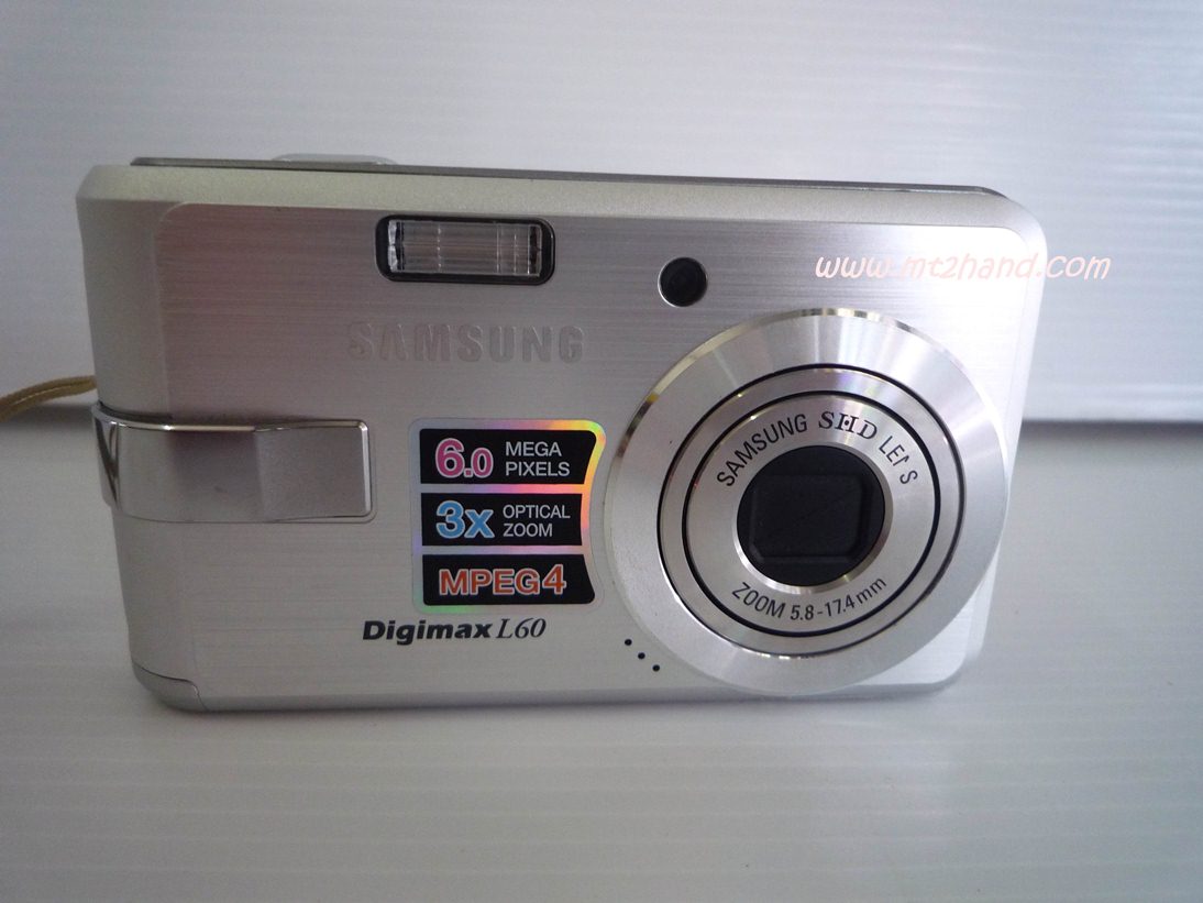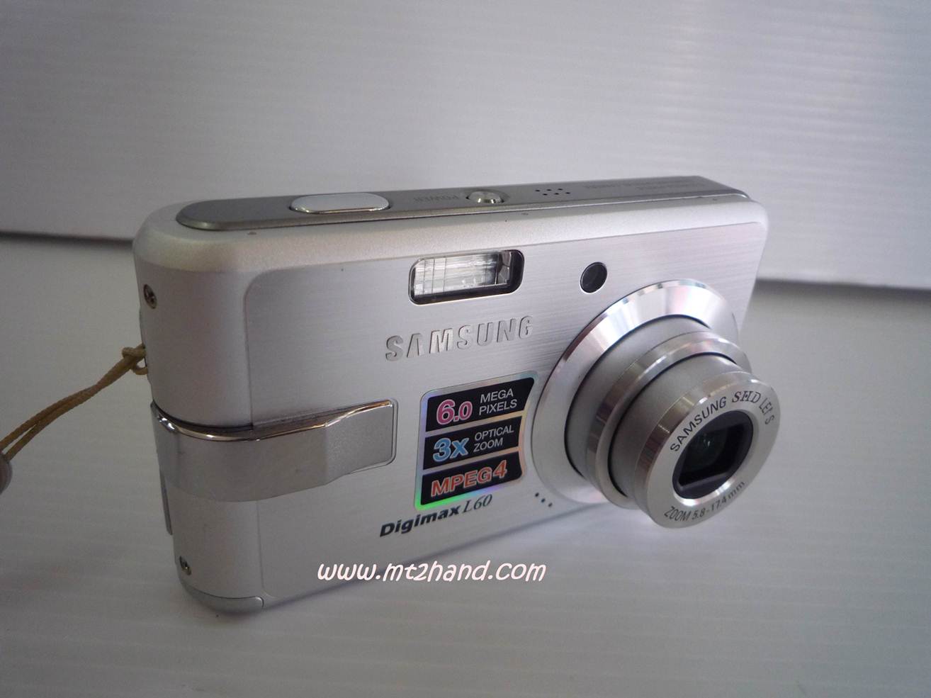 กล้องดิจิตอล Samsung Digimax L60 เป็นกล้องดิจิตอลที่มีความละเอียดถึง 6 ล้านพิกเซล ทำให้ถ่ายภาพที่มีขนาดตั้งแต่ 640x480 พิกเซลไปจนถึง 2816x2112 พิกเซล คุณจึงสามารถพิมพ์ภาพถ่ายที่ประทับใจของคุณได้อย่างคมชัดมากที่สุด กล้องดิจิตอล Samsung L60 มาพร้อมกับเลนส์กล้องขนาด 39-117 มม. สามารถซูมเลนส์ระยะไกลได้สูงสุดถึง 3 เท่า มีระยะโฟกัสภาพตั้งแต่ 1-80 ซม. ช่วยให้คุณไม่พลาดการจับภาพทุกช่วงเวลา ส่วนในเรื่องของการถ่ายภาพ Samsung L60 มีโหมดการวัดแสงต่างๆ ให้เลือกใช้มากมายสำหรับแต่ละสถานการณ์ เช่น Centre weighted, Matrix, Spot เป็นต้น และยังปรับสมดุลแสงสีขาวได้หลายรูปแบบ เช่น Auto, Cloudy, Daylight, Fluorescent, Incandescent, Manual, Sunny เป็นต้น สำหรับส่วนประกอบต่างๆ ภายนอกของ Samsung Digimax L60 นั้นก็ค่อนข้างน่าสนใจ LCD ขนาด 2.4-inch ความละเอียดจอแอลซีดี 112,000 Pixels สามารถใช้แบตเตอรี่สำหรับกล้องดิจิตอลที่เป็น Li-Ion ได้ น้ำหนักของตัวกล้องดิจิตอล Samsung L60 นั้น มีน้ำหนักประมาณ 120g.