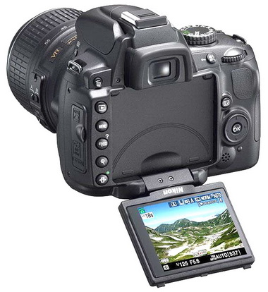 ขนาด 2.7 นิ้ว ความละเอียด 230,000พิกเซล ที่สามารถปรับหมุนและพับขึ้นลงได้ 180 องศา ซึ่งนับเป็นกล้องดิจิตอล SLR ตัวแรกของนิคอน ที่สามารถปรับหมุนจอมอนิเตอร์ได้ ช่วยให้ถ่ายภาพในมุมต่ำ มุมสูง หรือมุมที่มองตามปกติได้ลำบาก และแสดงภาพแบบ Live View ได้เช่นเดียวกับรุ่น D90 โดยเลือกโหมดโฟกัสภาพได้แบบ Contrast-detect AF, แบบ Face Detection และโฟกัสติดตามวัตถุที่มีการเคลื่อนที่ รวมทั้งเลือกพื้นที่โฟกัสได้แบบธรรมดา และแบบมุม