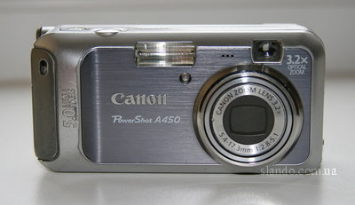 กล้องดิจิตอล Canon PowerShot A450 เป็นกล้องดิจิตอลที่มีความละเอียดถึง 5 ล้านพิกเซล ทำให้ถ่ายภาพที่มีขนาดตั้งแต่ 640x480 พิกเซลไปจนถึง 2592x1944 พิกเซล คุณจึงสามารถพิมพ์ภาพถ่ายที่ประทับใจของคุณได้อย่างคมชัดมากที่สุด กล้องดิจิตอล Canon A450 มาพร้อมกับเลนส์กล้องขนาด 38-122 มม. สามารถซูมเลนส์ระยะไกลได้สูงสุดถึง 3.2 เท่า มีระยะโฟกัสภาพตั้งแต่ 1-45 ซม. ช่วยให้คุณไม่พลาดการจับภาพทุกช่วงเวลา ส่วนในเรื่องของการถ่ายภาพ Canon A450 มีโหมดการวัดแสงต่างๆ ให้เลือกใช้มากมายสำหรับแต่ละสถานการณ์ เช่น Centre weighted, Evaluative, Spot เป็นต้น และยังปรับสมดุลแสงสีขาวได้หลายรูปแบบ เช่น Auto, Cloudy, Daylight, Fluorescent, Incandescent, Manual เป็นต้น สำหรับส่วนประกอบต่างๆ ภายนอกของ Canon PowerShot A450 นั้นก็ค่อนข้างน่าสนใจ LCD ขนาด 2-inch ความละเอียดจอแอลซีดี 86,000 Pixels สามารถใช้แบตเตอรี่สำหรับกล้องดิจิตอลที่เป็น 2x AA ได้ น้ำหนักของตัวกล้องดิจิตอล Canon A450 นั้น มีน้ำหนักประมาณ 165g.