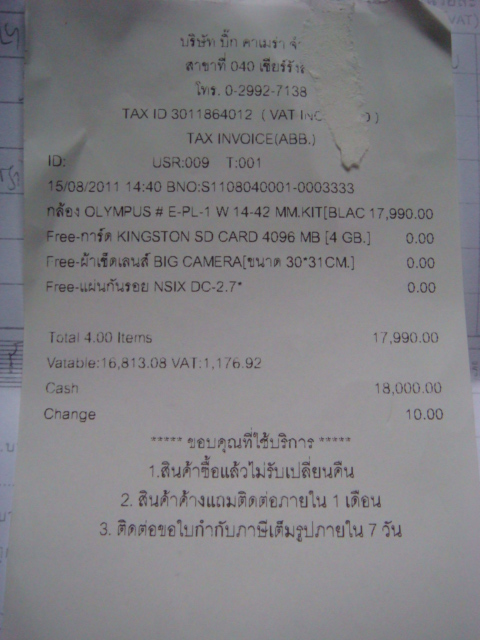 กล้อง OLYMPUS E-PL1 ซื้้อมา 15/8/54 จาก Big Camera 17990 ขายถูก มีใบเสร็จ