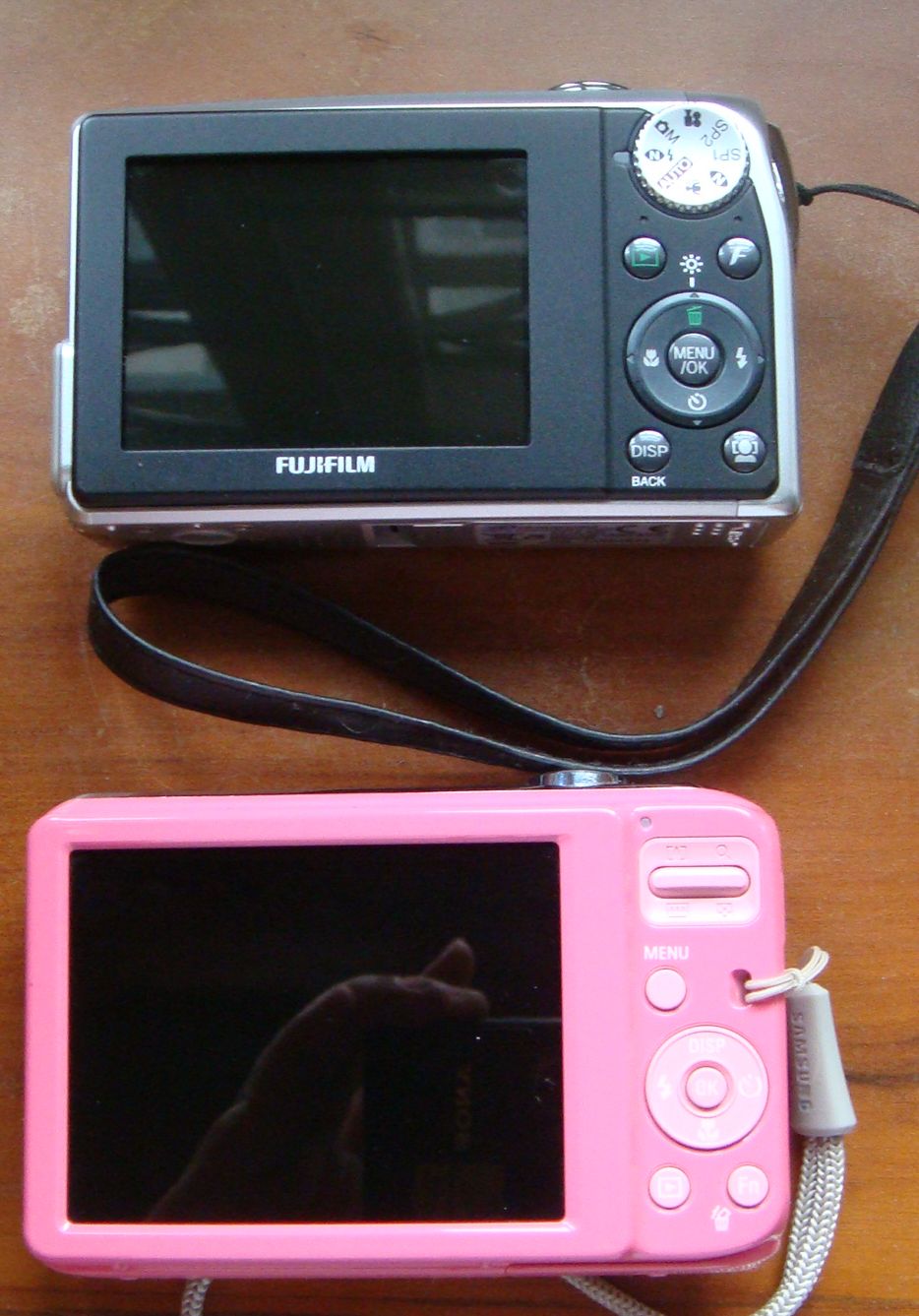 มีกล้องสองตัวนะค่ะ สีชมพู ของ ฟูจิฟิมล์ 12.1 ล้าน ถ่าน AA ค่ะ 2800 ตัวที่สองเป็นของ ซัมซุง สีบอลน์ 8.3 ล้าน ถ่าน ลิเที่ยมค่ะ 2900