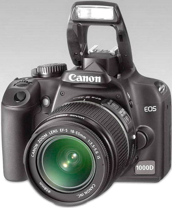 Canon EOS 1000D ใช้ระบบเซ็นเซอร์ภาพ CMOS ให้ความละเอียดสูงสุด 10.1 ล้านพิกเซล ขนาดภาพใหญ่สุด 3888 x 2592 พิกเซล เมื่อนำเลนส์กล้องฟิล์มตระกูล EF มาใช้ ต้องคูณทางยาวโฟกัสเพิ่ม 1.6 เท่า เหมือนกับรุ่น EOS 450D และใช้หน่วยประมวลผลประสิทธิภาพสูง DIGIC III image processor สามารถประมวลผลภาพได้รวดเร็ว อีกทั้งยังรองรับการแสดงสี 12 บิต (EOS 450D ทำได้ 14 บิต) สิ่งที่แคนนอนตัดทอนออกไปในกล้องรุ่นนี้คือ ไม่มีระบบวัดแสงเฉพาะจุด และใช้สายลั่นชัตเตอร์แบบมีสายไม่ได้ (ใช้รีโมทไร้สายอย่างเดียว) และใช้เมมโมรี่ SD /SDHC memory cards แทนการใช้การ์ด CF ทำให้ตัวกล้องมีขนาดเล็ก ทะทัดรัด และน้ำหนักเบาเพียง 450 กรัม (เฉพาะบอดี้) สะดวกในการพกพาไว้สำหรับถ่ายภาพตามสถานที่ต่างๆ