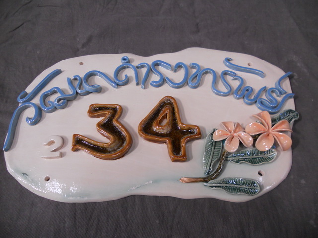 มีหลายแบบให้เลือก สามารถออกแบบป้ายบ้านเลขที่ได้ตามแบบขนาดและรูปแบบได้ตามต้องการ คุณสมบัติที่โดดเด่นเซรามิค คือ ทดแดด ทนฝน ไม่ซีดจางตามกาลเวลา สวยและภูมฐาน ติดตั้งง่าย มีรสนิยม นอกจากนี้ยังรับทำ ผลิตของชำร่วย ของที่ระลึก ของแต่งบ้าน แต่งสวนด้วยเซรามิค สนใจ โทร 086 6642480