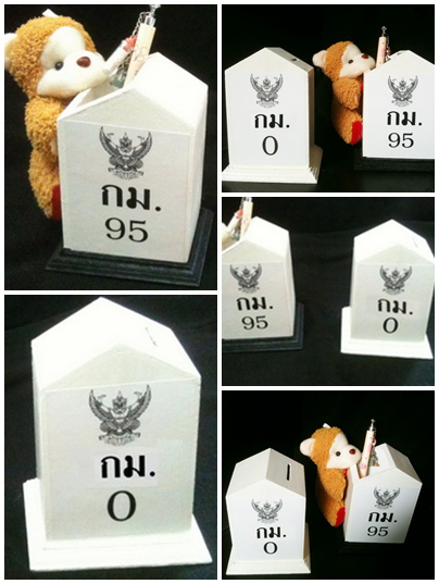 กล่องใส่ปากกาน้องหมีหลักกิโล รูปทรงเหมือนออมสินหลักกิโล แต่ด้านบนมีช่องสำหรับใส่ปากกา ดินสอ หรืออุปกรณ์สำนักงานต่าง ๆ ได้