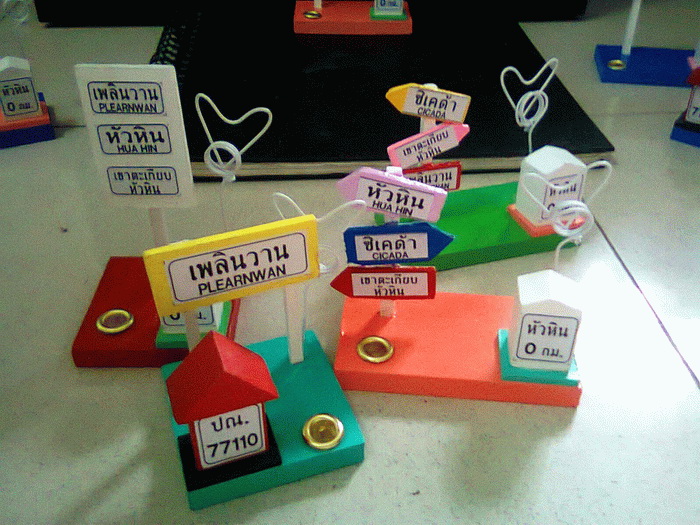 หรือสำหรับร้านขายของฝาก ของที่ระลึก... มีแบบต่าง ๆ ดังนี้ค่ะ แบบป้าย + หลักกิโล ฐานขนาด : 6 x 6 x 7.5 cm. แบบป้าย 3 แผ่น + หลักกิโล ฐานขนาด : 6 x 6 x 7.5 cm. แบบป้าย + ตู้ไปรษณีย์ ฐานขนาด : 6 x 6 x 7.5 cm. แบบป้ายแนวตั้ง + หลักกิโล ฐานขนาด : 6 x 6 x 10 cm. ราคาปลีก 30 บาท