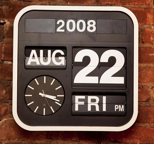 โดยจะเป็นแผ่นป้าย (flip) ลักษณะคล้ายป้ายในสนามบิน แสดง วัน เดือน ปี และมีนาฬิกาแบบเข็ม quartz แสดงเวลา