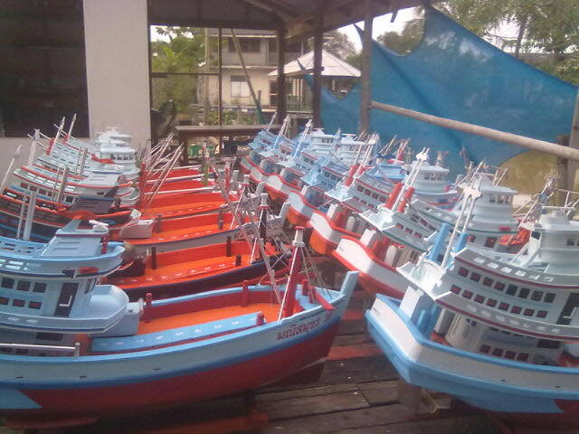 เรือประมงจำลองเป็นงานประดิษฐ์ที่ทำจากโฟมยาง EVA ชนิดอัดแน่นจึงมีคุณสมบัติลอยน้ำได้ เรือประมงจำลองนี้ถูกออกแบบและประดิษฐ์โดยผู้ที่คลุกคลีอยู่กับเรือประมงมาหลายสิบปี เน้นชิ้นงานที่เสมือนจริงให้มากที่สุด ไม่ว่าจะเป็นเรื่องของสัดส่วนของลำเรือ และเก๋งของเรือ รวมทั้งรายละเอียดต่างๆของอุปกรณ์ที่ใช้ในเรือประมงจริง เช่น รอก คว้าน พวงมาลัย(พังงา) เสากระโดง ใบพัด หางเสือ หรือแม้กระทั่งสีที่ใช้ทาตกแต่ง ก็ตกแต่งด้วยลวดลายที่เหมือนเรือจริง