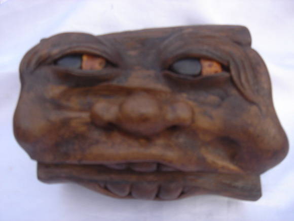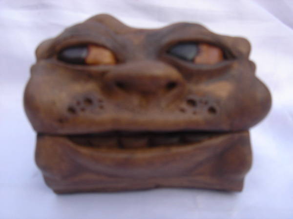 ตลับไม้สัก หน้าตลับเป็นงานปั้นขี้เลื่อย ตัวตลก