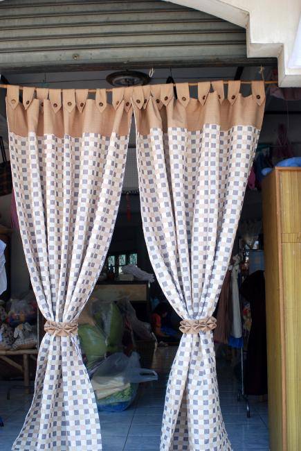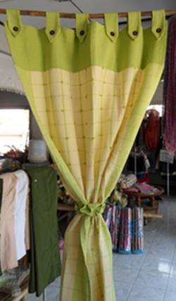 ผ้าม่านหน้าต่างผ้าฝ้ายทอมือมีหูติดกระดุม