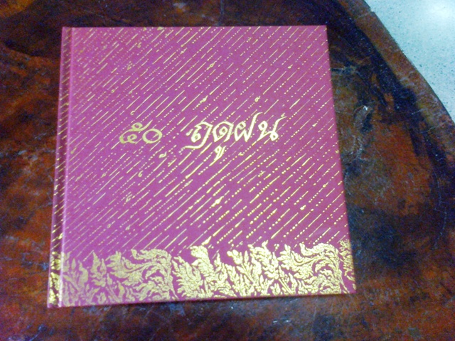 ++ หนังสือ 50ฤดูฝนมีทั้งหมด50ตอนพิมพ์ด้วยกระดาษอาร์ทมันำร้อมรูปภาพทรงอริยาบทต่างๆที่หาดูได้ยาก ใช้คำประพันธ์29ชนิดรวม388บท อาทิเช่น ร่ายยาว,โคลง2,3,4สุภาพ กลอน7,กลอน8,กาพย์ยานี11,อินทรวิเชียรฉันท์ เเละอื่นๆครับ(ของใหม่)