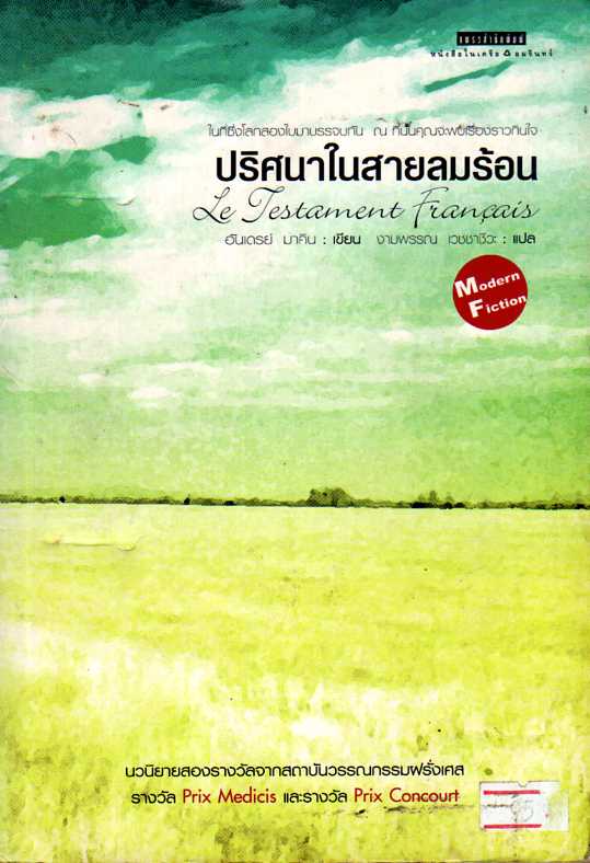 ชื่อหนังสือ " ปริศนาในสายลมร้อน Le Testament Francais"