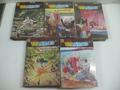 เทพกระดูกขาว 5 เล่ม สำนักพิมพ์ บรรณกิจ ปี 2522 ก้องพสุธา 5 เล่ม สำนักพิมพ์ บรรณกิจ ปี 2521 เพ็กฮวยเกี่ยม 6 เล่ม สำนักพิมพ์ บรรณกิจ ปี 2522 กระบี่พิศวาส 6 เล่ม สำนักพิมพ์ บรรณกิจ ปี 2520 บัณฑิตทมิฬ 6 เล่ม สำนักพิมพ์ บรรณกิจ ปี 2520 จอมใจจอมยุทธ 6 เล่ม สำนักพิมพ์ บรรณกิจ ปี 2523 พญามารเงิน 6 เล่ม สำนักพิมพ์ บรรณกิจ ปี 2514 วีรบุรุษสำราญ 4 เล่ม สำนักพิมพ์ บรรณกิจ ปี 2521 หลักโลหิต 6 เล่ม สำนักพิมพ์ บรรณกิจ ปี 2513 กวมอิมมรกต 8 เล่ม คลังวิทยา ปี 2523